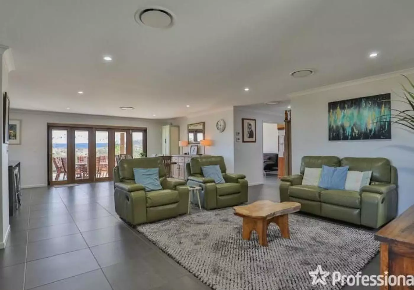• Open plan living with ducted air conditioner and fire place