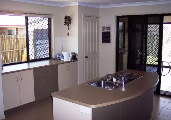 The laundry has a walk in linen press, an abundance of bench space and there is even an ideal sewing space for mum that simply slides away.